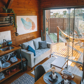 Nós ficamos em uma das 5 cabanas que acomodam até 02 hóspedes, todas equipadas com cozinha completa, calefator e smart TV.